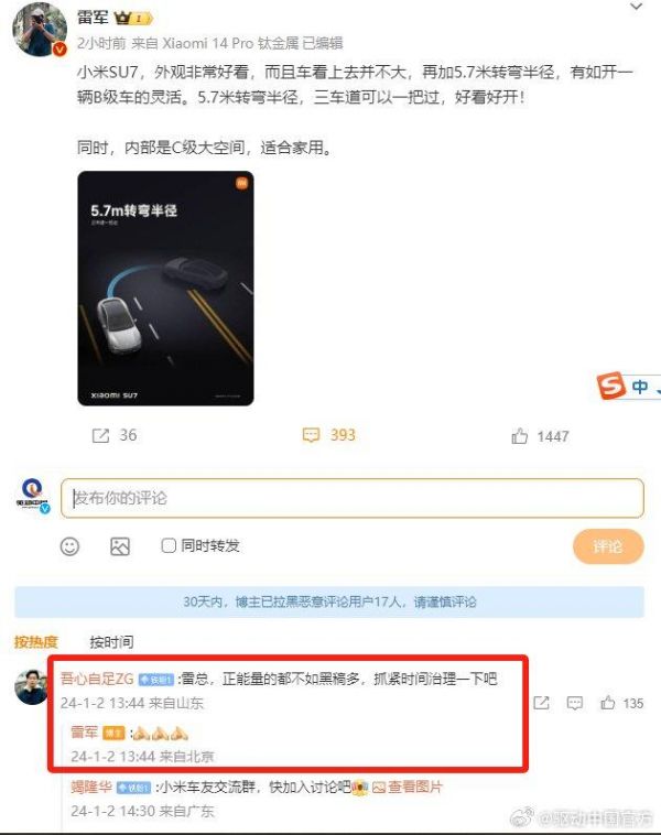 网友催小米汽车公布价格,雷军:50 万以内有对手吗?