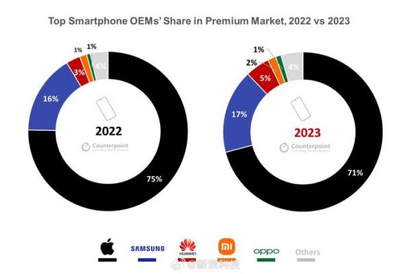 #华为夺2023全球高端手机份额前三##2023全球高端手机份额苹果占71%#【2023全球高端手机战报:苹果超七成独占鳌头、三星17%排第二、华为5%强势回归】