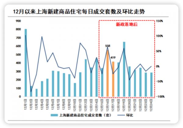 关于新政落地的新房成交量,诸葛数据研究中心表示:“从新政落地超一周的新房成交表现来看,上海新房成交动力则略显不足,本周(12.18~12.24)新房整体成交量出现下滑,周内19日成交大幅上涨至高位水平后,自20日起成交持续回落到新政前水平。”