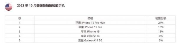 在2023年10月中国最畅销智能手机中,前五分别是iPhone 15 Pro Max、华为Mate 60 Pro、iPhone 15 Pro、荣耀X50和苹果 iPhone 15。其中4款售价高于600美元。另外,2023年10月美国最畅销智能手机中,iPhone 15 Pro Max的销售份额更是高达24%。再加上现在有各种分期付款和打折促销,使得高端手机对普通消费者更加可及。