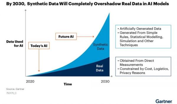 Gartner报告预测,到2030年,合成数据在AI模型中的使用将完全超过真实数据