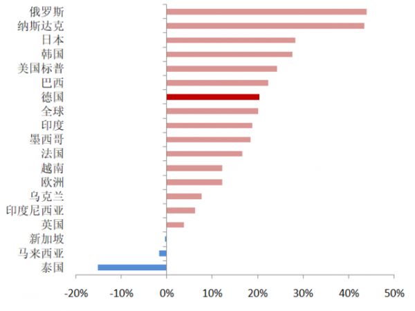 另外,虽然俄罗斯股市以43.9%的涨幅超越纳斯达克,以及土耳其股市上涨34.26%仅次于希腊,但由于卢布和里拉贬值幅度较大,所以若以外币计价,收益或显著缩水。