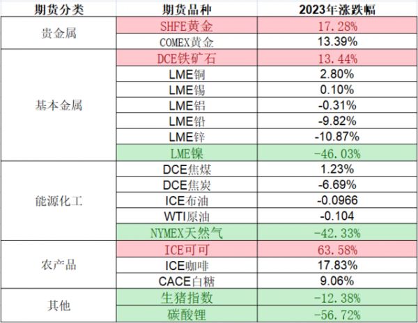 而表现不佳的商品中,天然气、镍、碳酸锂则年内跌幅都超过了40%。其皆来源于近一两年价格过分炒作,最终脱离需求而大幅回归。