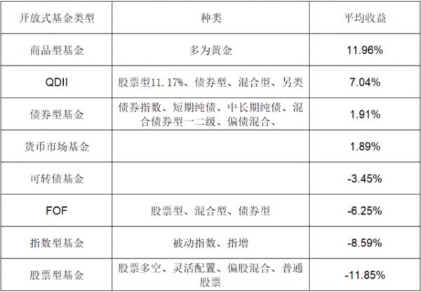商品型基金中主要以黄金为主,整体收益率排名第一,为11.96%,但彼此差距较小。最好收益率来自华安黄金ETF16.97%。