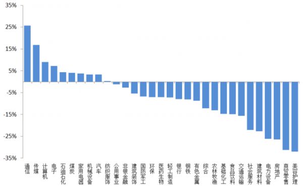 而地产链和下游弹性消费则表现垫底。