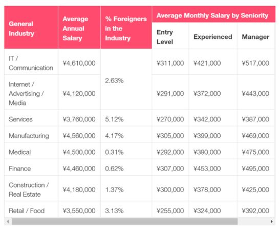 部分行业及职位收入列举