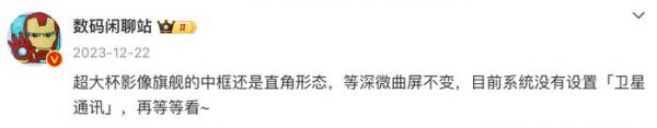 此前,来自博主@数码闲聊站 的一份爆料中提到:“超大杯影像旗舰的中框还是直角形态,等深微曲屏不变,目前系统没有设置「卫星通讯」,再等等看~”