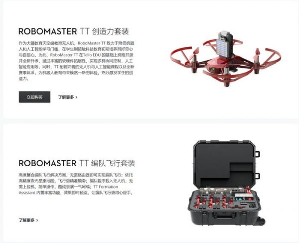 除此之外,大疆教育应用还有机甲大师高校系列赛、AI 人工智能教育套件等赛事及解决方案。