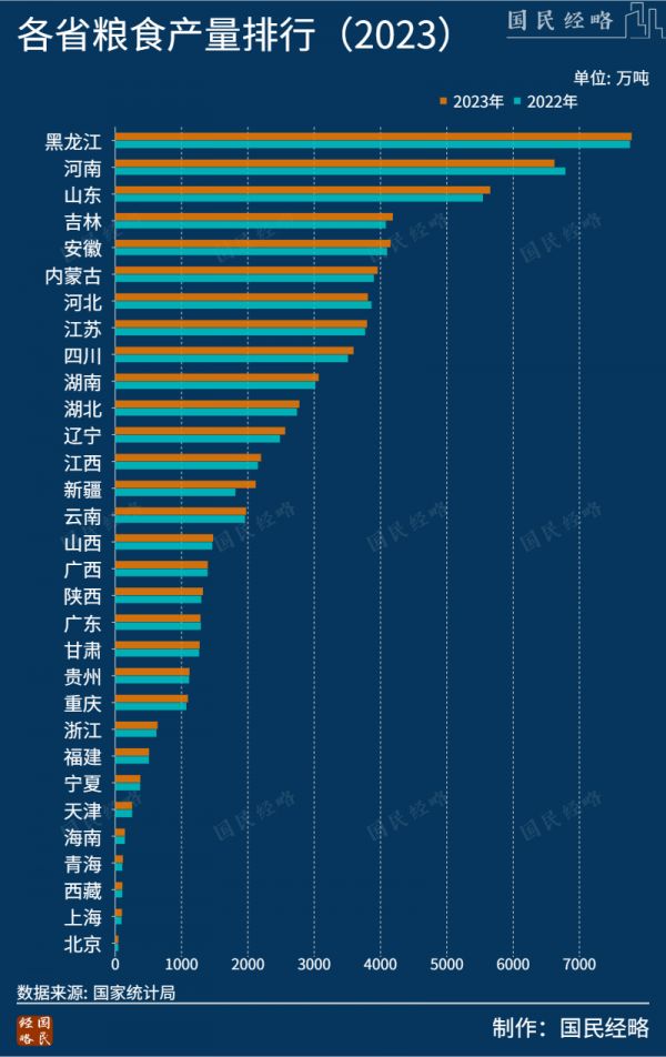 黑龙江粮食产量力压河南、山东,连续14年位居全国之首,成为全国最大的粮食净贡献省份。