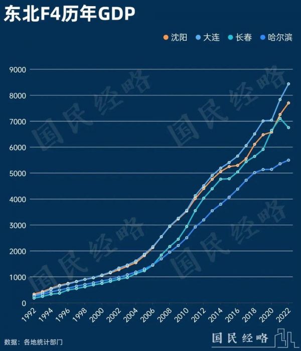 迄今为止,东北仍然没有万亿GDP城市,不过大连有望在2025年之前突破,沈阳最迟在2027年之前突围,而哈尔滨或许要等到10年以上。