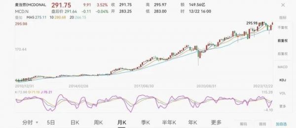 且在更多业内人士看来,麦当劳小幅度的提价不会对单量形成冲击。屡次提价后,麦当劳成为全球范围内对抗通胀最好的企业之一。截至美东时间12月22日,麦当劳报价每股291.75美元,总市值2116亿美元。