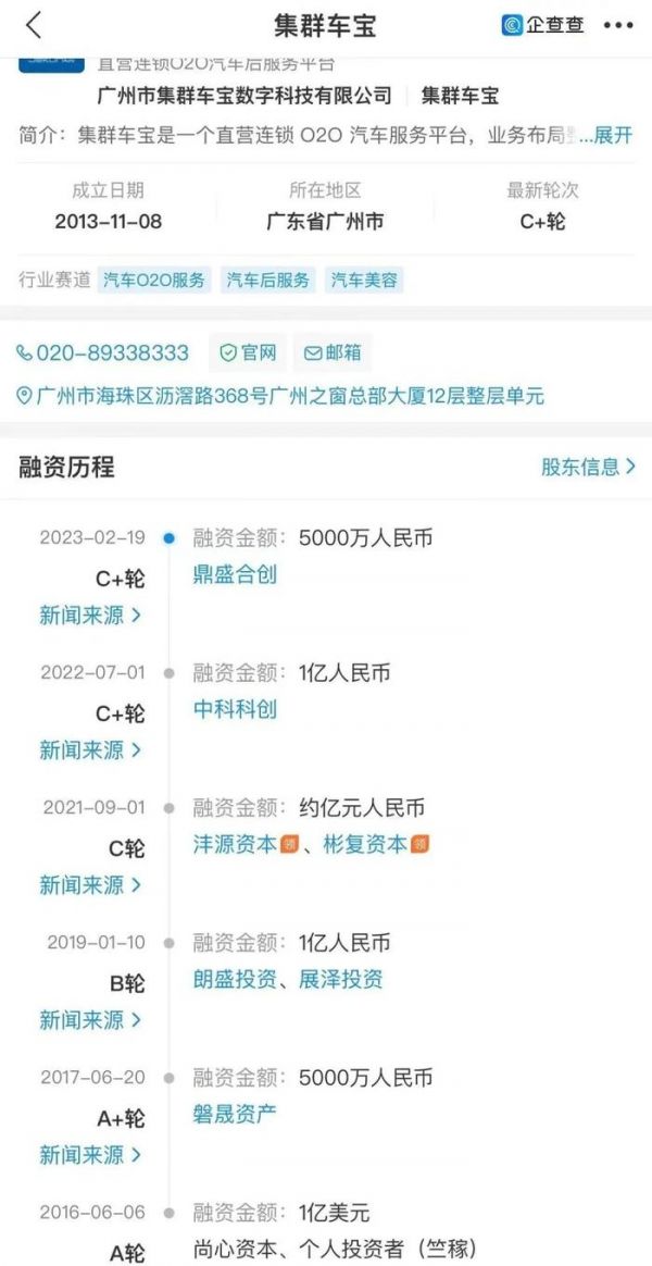 公开信息显示,集群车宝前后一共完成了7轮融资,金额均在5000万以上。