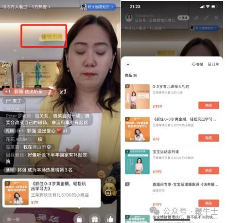 此外,王荣辉从2022年开始尝试踏入直播领域,售卖关于婴幼儿培养的课程,其称会未来会努力开直播教课来退费、偿还债务等。在直播间里,王荣辉的背景,是一个个奖杯的上方贴了一张“赚钱退费”的纸条。