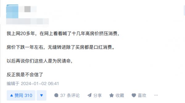 实际上,国内舆论目前对房地产的态度是比较微妙的,一方面大家抱怨房价高,另一方面已经高价上车的群体并不希望房价现在就跌,起码不希望跌得太多太快。于是,这种矛盾的心态就很容易被舆论利用。这些舆论当然不会公然说房价越高越好,但他们会用各种话术告诉你“中国不能不救房地产”。