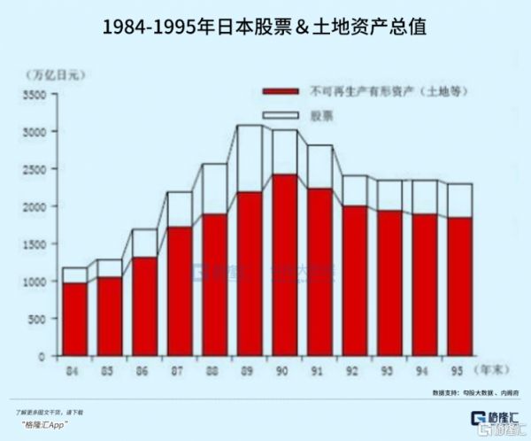 1989年,日本土地总资产是2000万亿日元,而面积大30倍的美国,只有约500万亿日元。