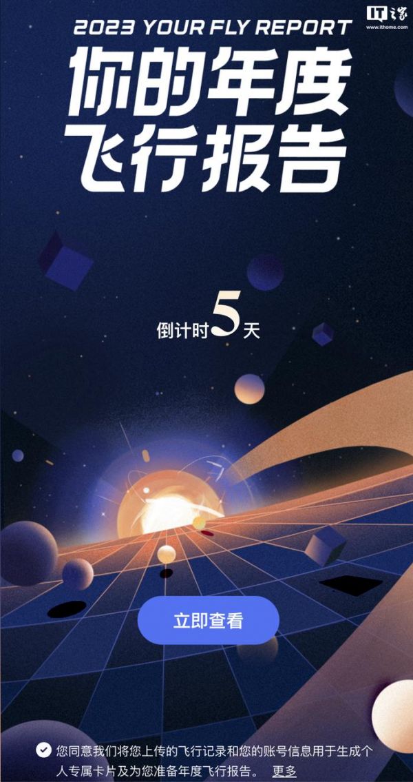 IT之家注意到,目前小伙伴们可以访问链接生成“简略报告卡片”,生成前需登录大疆账号并确认“您同意我们将您上传的飞行记录与您的账号信息用于生成个人专属卡片及为您准备年度报告”条款,完整报告将在 1 月 10 日公布。