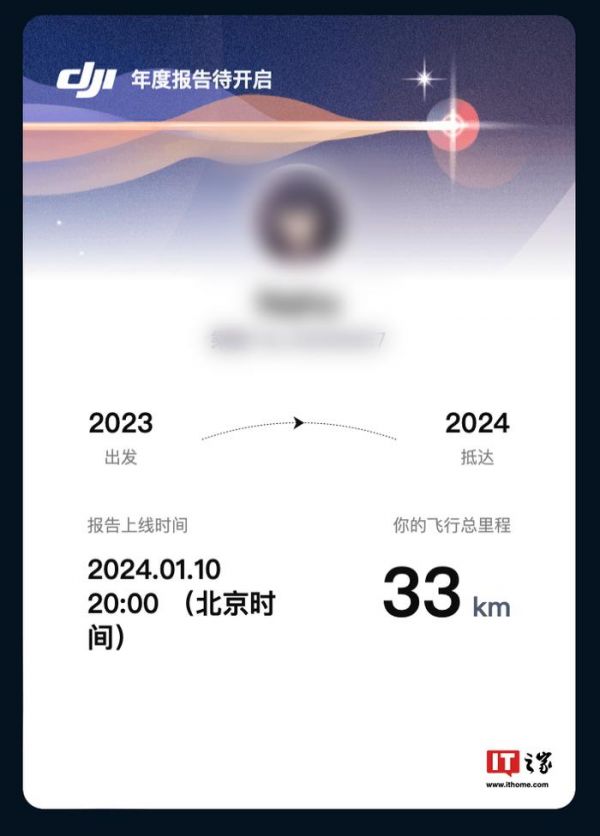 IT之家 1 月 5 日消息,“DJI 大疆创新”官方微博今天宣布,2023 年度大疆年度飞行报告即将在 1 月 10 日 20:00 上线。