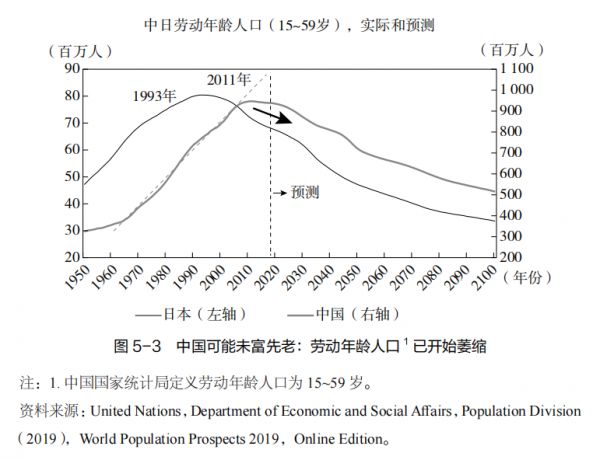 日本例子的指导意义在于,预计最早将于2022年开始的总人口下降将拖累由人口增长带来的那部分经济增长。如果中国不能在人口因素带来的经济增长势头消失前走出中等收入陷阱,那么作为社会负担不断加重的老龄化国家,可能难以实现人均GDP在2035年达到20000美元的目标。