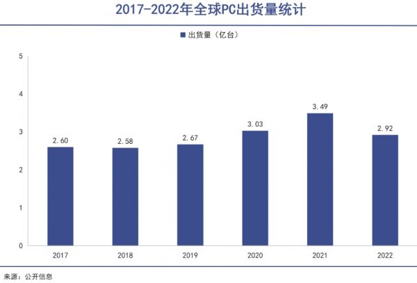 回顾近几年的全球PC市场出货量,在新冠疫情带来的居家办公、线上教育等需求褪去之后,PC的出货量又开始回归正常水平(全球年出货2.6亿台左右)。