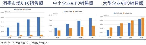 而且可以预见,AI PC的单价和溢价一定会高于普通PC,面向个人用户的AI笔记本、AI台式机单价大概会在5500~6500元、4000元左右,面向企业用户的AI笔记本、AI台式机单价大概会在5000~6000、3500元左右。