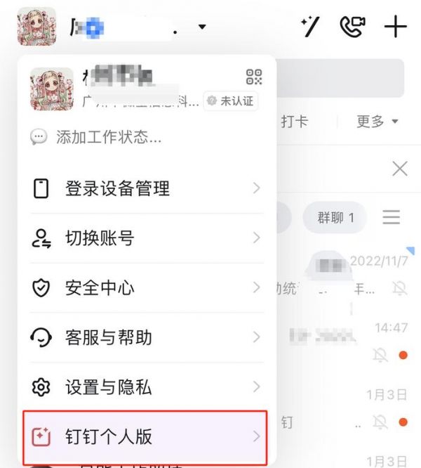点击手机或PC左上角个人头像,就可以进行「钉钉个人版」的版本切换。