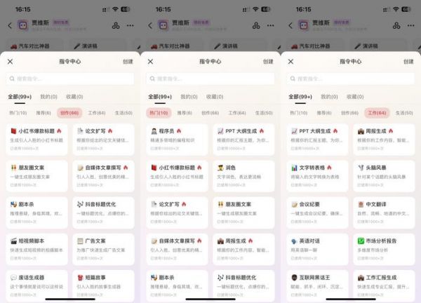 在「指令中心」选择我们需要的角色,可以看到角色几乎涵盖了日常生活工作的方方面面。