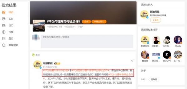 1月3日,#华为与懂车帝停止合作#登上微博热搜。