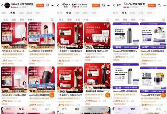 尽管成立时间不长,但国产美容仪靠着被电商驯化得足够成熟的供应链,将价格优势发挥到了极致,主打一个为每一个“穷鬼”都实现“爱美平权”。目前,觅光和花至店内销量最好的射频美容仪均在2000元以下,老品牌雅萌同类型产品的售价则在4000元以内。