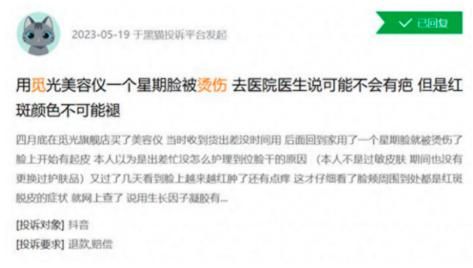 在众口铄金对家用美容仪的“智商税”嘲讽中,已经有不少消费者在黑猫投诉上发起了权益保卫战。根据这群真实用户的反馈来看,家用美容仪被焊死“智商税”标签,主要是因为“用了没效果”,再就是价格波动大,经常会出现“比刚买的时候又降价了”。