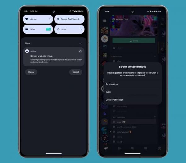 用户给 Pixel 8 和 Pixel 8 Pro 手机贴膜之后,系统就会显示一条通知,告知用户应该启用屏幕保护贴模式。