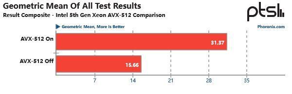68 项测试对比英特尔第五代至强处理器启用/禁用AVX-512性能变化