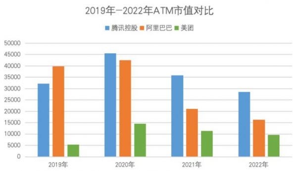 因此,“谁是第三?”,成为了投资者与观察者津津乐道的话题。如果以营收为参考系,那么京东则从2013年以来一直强势于腾讯、阿里巴巴;如果论净利润,网易和后来居上的拼多多也能与京东争一争第三名;如果看市值,那么从2019年到2022年“ATM”的铁三角则称得上稳固。