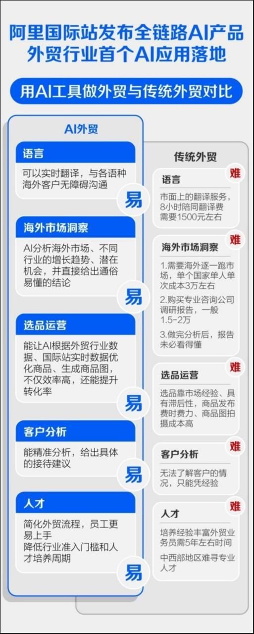 种种变化可能也会在未来发生,包括安全话题。在专业领域下,阿里也需要能够保证信息安全性,同时又能对用户产生非常高效和快速的落地场景。林豪表示,"对于业务来说一定是希望车先跑起来,但是这个车一定要是安全的。对整个外贸能带来什么样的变化。国际站秉承一句话就是‘AI让外贸更简单’。"