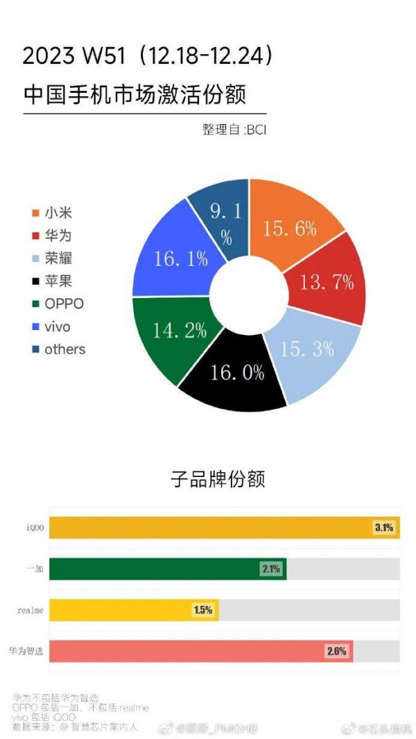 我们再看一下最近的销量,可以看出,在年底时间点,处于一个微妙的状态,就是刨除产品亮点不在于性价比的苹果和华为,小米、荣耀、OPPO、vivo份额相当,四家不可能维持平衡,一个此消彼长的情况即将出现。