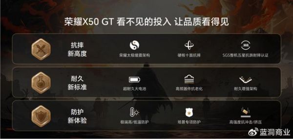 荣耀X50 GT传承了X系列高品质基因,延续采用首创的“荣耀太极缓震架构”,通过了瑞士SGS整机五星抗跌耐摔认证,实现两面四边四角的“十面”无死角抗摔。同时,荣耀X50 GT对用户高频场景进行了严苛品质测试,并在器件抗老化方面,采用全新耐久增强架构等保证器件的一致性。通过荣耀太极缓震架构、耐久增强架构以及对极端场景的专项优化,荣耀X50 GT构建了战神防护体系,为用户保驾护航。
