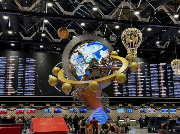 机场里张灯结彩,丝毫看不出任何和俄乌冲突有关的因素 笔者摄