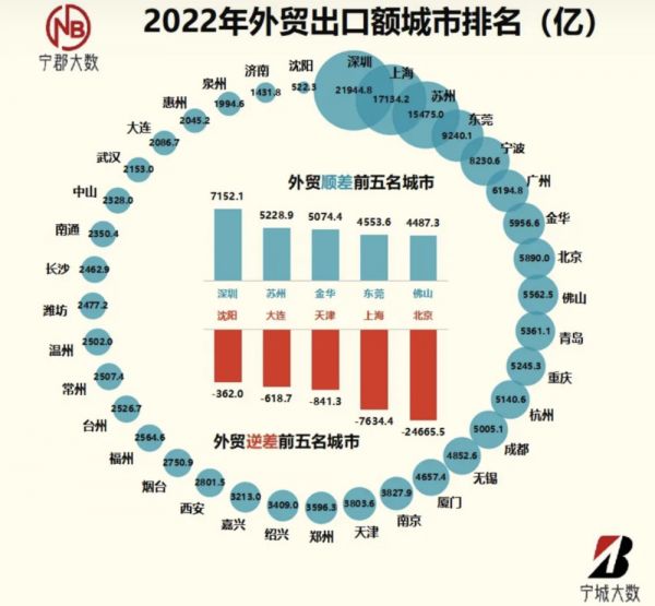 苏州是典型的外向型城市,特别依赖外贸,也是全国五个赚取外汇最强城市之一,外贸顺差额位居全国第二,仅次于深圳。