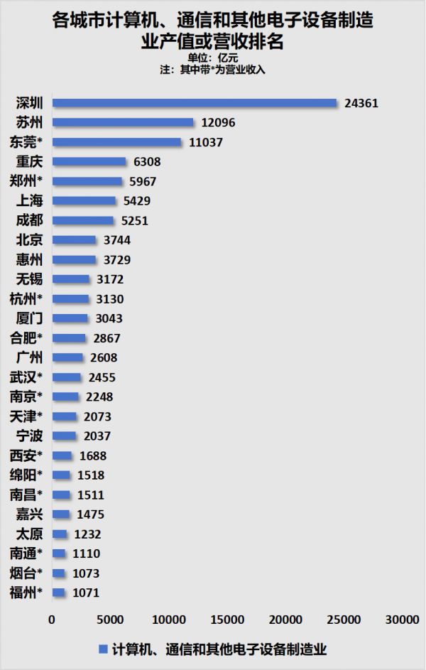 2021年深圳的信息产业产值24361亿元,是信息产业上的霸主,是位居第二的苏州的两倍。
