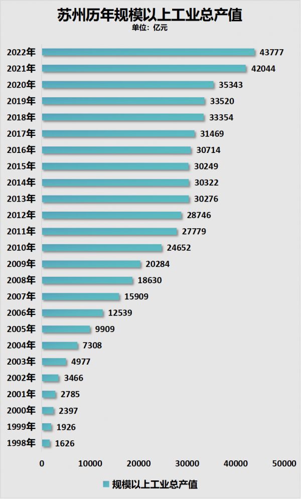 2021年苏州规模以上工业总产值登上4万亿台阶,到2026年有5年时间,突破的概率比较大。