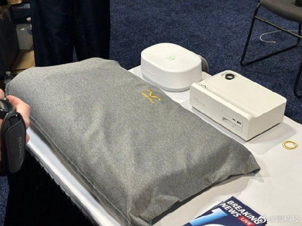 (图源:雷科技摄制)然后,小雷在现场看到了一款神奇的枕头,它来自10minds。这款产品利用AI技术记录用户睡觉时的鼾声,监测到呼吸变化需要介入时,会先通过内置的传感器检测用户的头睡在哪里,并通过内置的气囊将用户的头摆正并开放气道,从而避免用户睡觉呼吸骤停的情况。