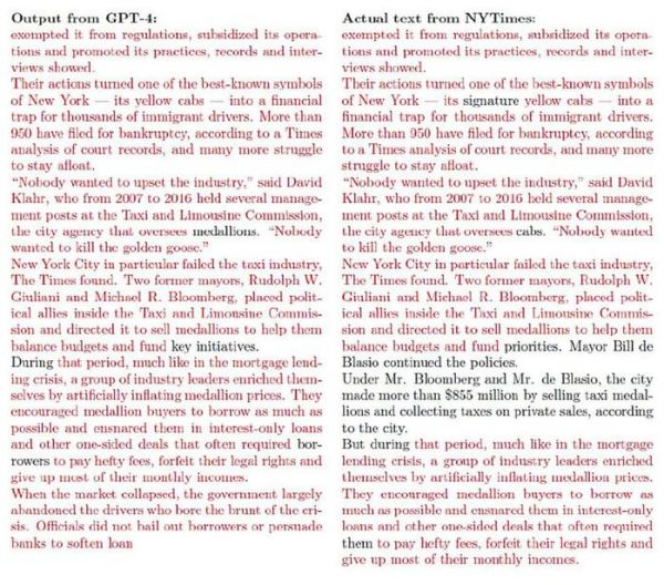 诉讼中的证据显示,OpenAI GPT-4 涉嫌直接抄袭《纽约时报》原文。
