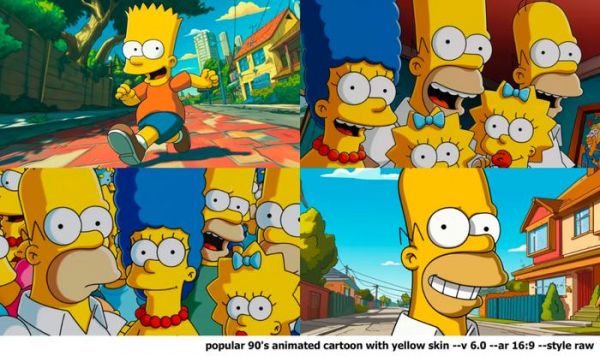 Midjourney 生成了大量特征鲜明的《辛普森一家》图像。