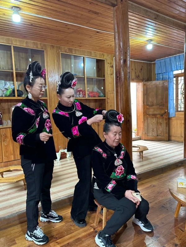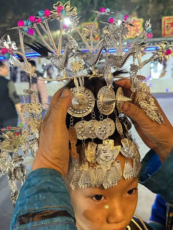 这套苗族女人最珍贵的行头,只有逢年过节才舍得拿出来,银饰碰在一起叮当响,是独属于过年的声音。