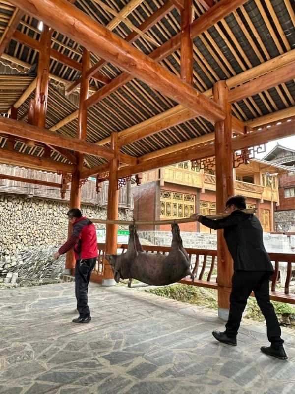 苗寨通常是在苗年伊始来杀猪,庆贺一年的风调雨顺。