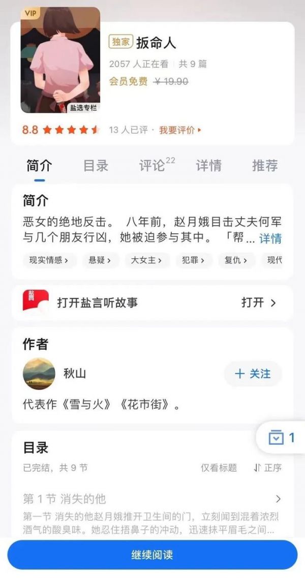 除此之外,盐言故事也基于年轻人的内容消费趋势,打造开脑洞、文风轻松的电子榨菜等题材,迎合读者各个场景的阅读需求。