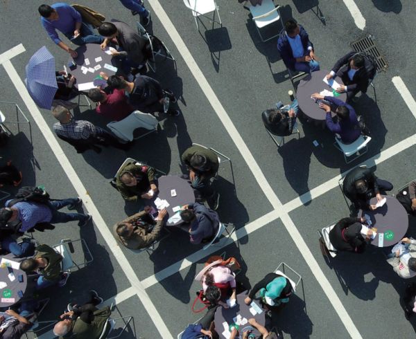 2018年10月27日,南京。掼蛋爱好者在参加比赛。(图/泱波/中新社)