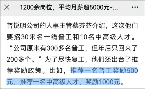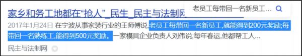 乃至于宁波某老板表示:你们回老家的时候给我带点人回来一起干。带回来的给你奖励。带回一个工人可获得200~500元的酬劳。