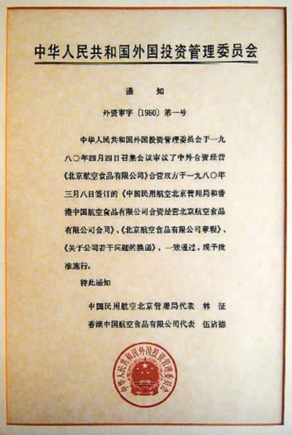 为此,国家民航局曾到日本等国家进行过专项考察,也考虑过与境外配餐公司合作。恰在此时,香港美心集团创始人伍沾德和女儿伍淑清积极与有关部门接洽开办合资航空食品企业。