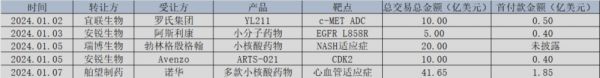 图:2024年第一周主要license-out一览,来源:锦缎研究院