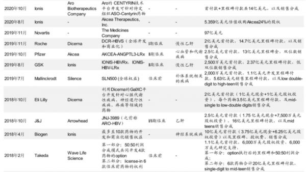 图:小核酸药物授权交易一览,来源:中金公司